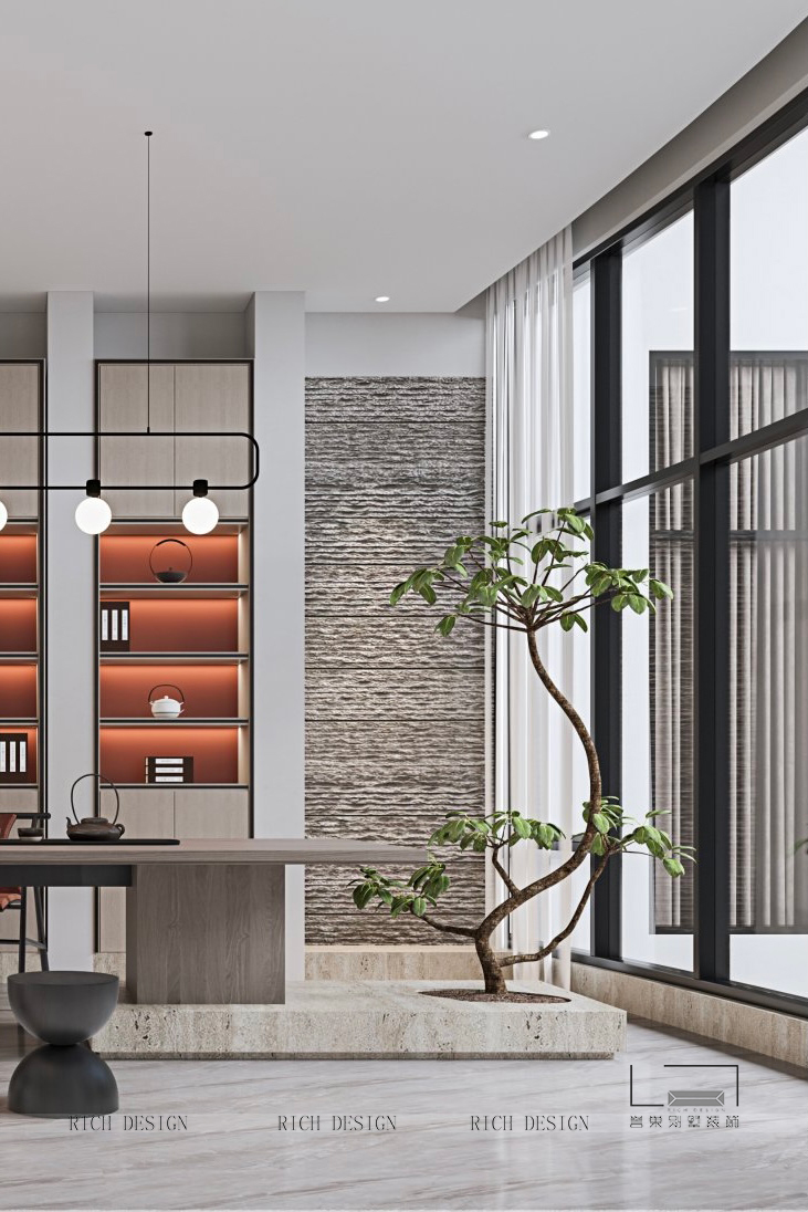 書房目之所及,窗外視野一覽無余,繁華如畫。室內(nèi)通過自然紋理木飾面、綠植等材質(zhì)元素的運(yùn)用,以簡(jiǎn)練的設(shè)計(jì)語(yǔ)言,渲染出質(zhì)樸寧?kù)o的生活品質(zhì)。