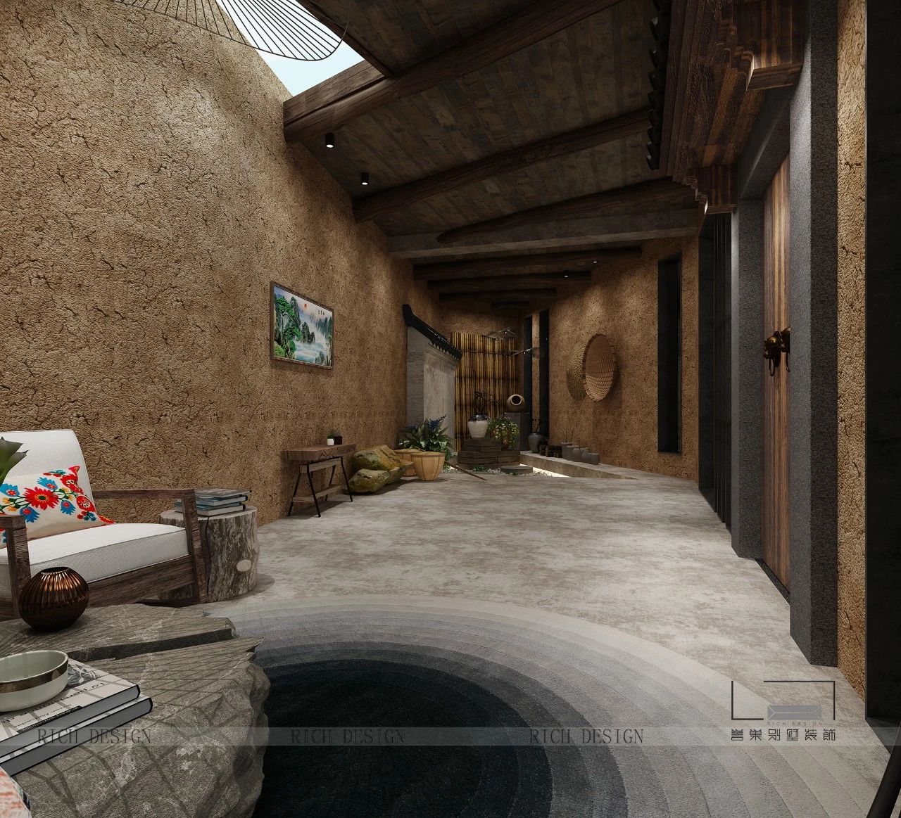 并對原先建筑材料進(jìn)行再次利用,結(jié)合石料與鋼材,剛?cè)岵?jì),形成一個材質(zhì)藝術(shù)的碰撞,讓材質(zhì)本身在空間中對話。整體內(nèi)外塑造更講究建筑與環(huán)境的融合、空間與自然、人與生活的承上啟下關(guān)系。