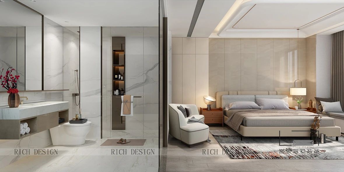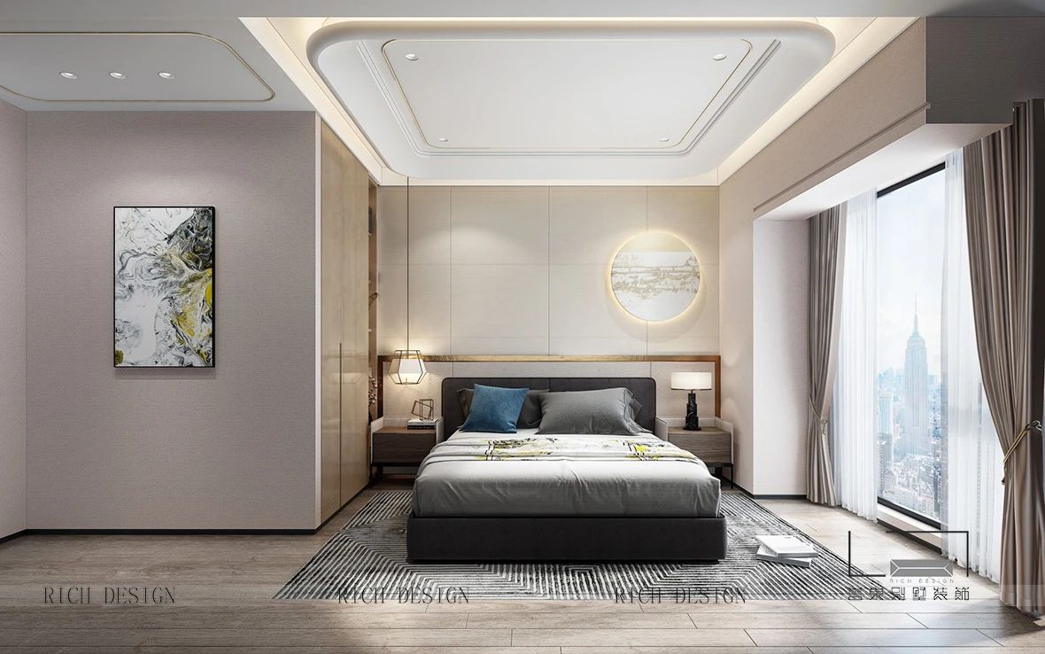 大面積的米白灰三色會稍顯缺乏生活氣息,所以在不同的空間中設(shè)計(jì)師加入了中式細(xì)節(jié)元素以及不同的亮色來點(diǎn)綴,使整個空間賦予了文化底蘊(yùn),在拉開空間層次感的同時賦予了每個空間不同的靈魂。