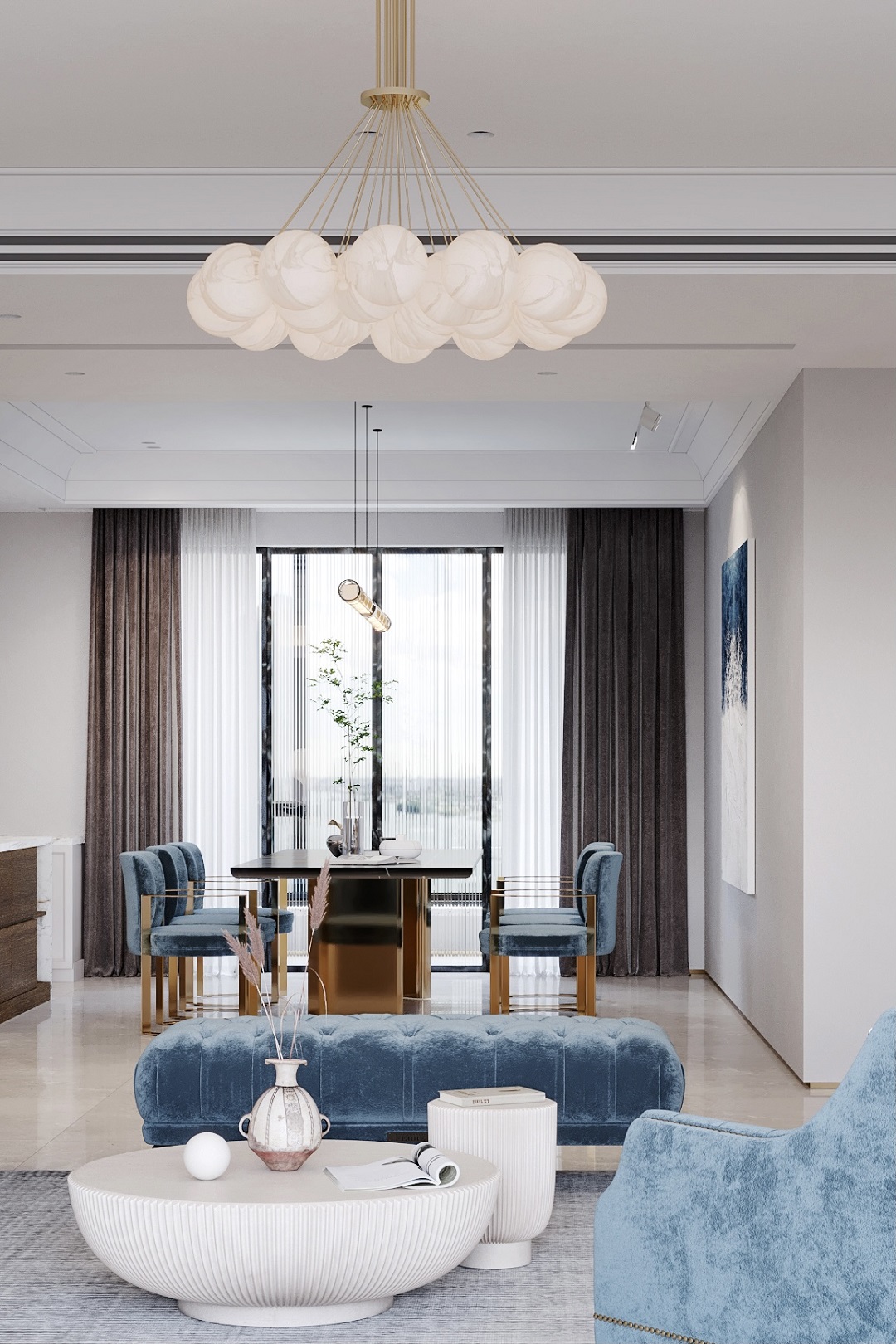 空間以精致柔和的質感結合獨特謹慎的細節(jié),藝術的形式結合現(xiàn)代的審美,同時簡約、藝術多元化混合于一體,妙趣橫生的細節(jié)充盈空間,為這個典雅的住宅增添了現(xiàn)代氣息。