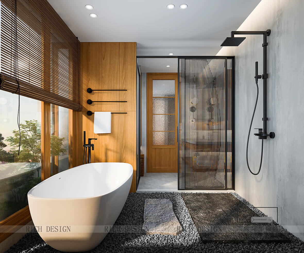 衛(wèi)生間墻面采用的是深色藝術(shù)漆面,也能和潔具對比強調(diào)產(chǎn)品的品質(zhì)感,產(chǎn)生日式空間材質(zhì)的對比感,經(jīng)過防水、防腐等特殊處理無須擔心水汽影響問題。