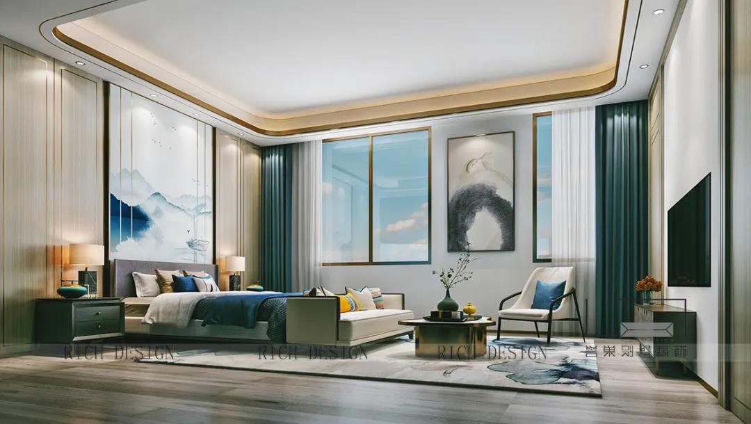張春來在每個設計方案中都會選擇一部分跳色作為空間的點綴,包括這套曦城新中式風格的設計,對顏色的精準把控讓他設計的空間總是少了一絲沉悶和單調(diào),也會更多一些趣味性。