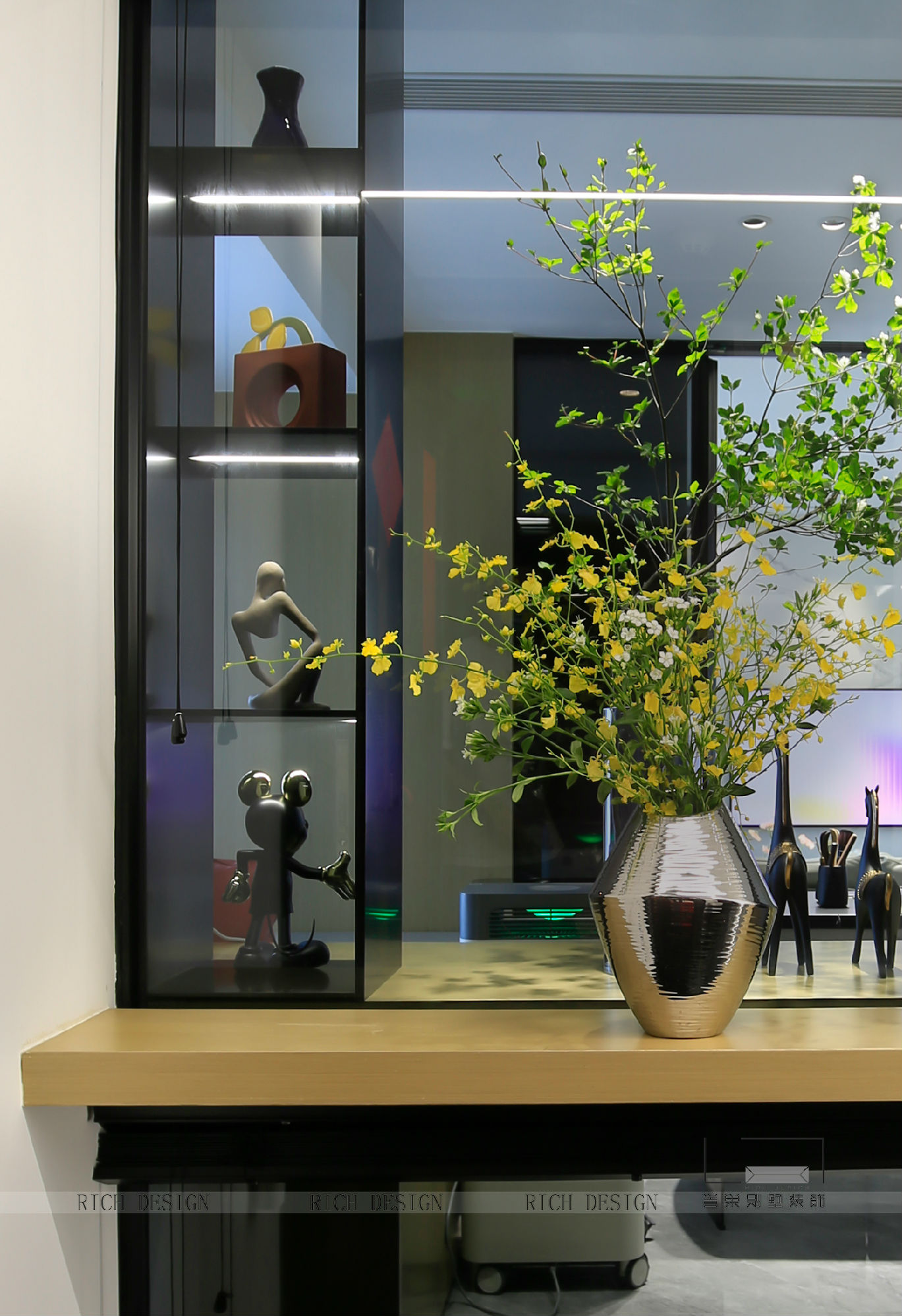 秉持純粹自然的美學(xué)思維,摒棄繁瑣的裝飾,以現(xiàn)代空間幾何感取而代之 。自然光線投射出的暖意與恰到好處的空間陳設(shè),氤氳家的寧靜與溫馨。