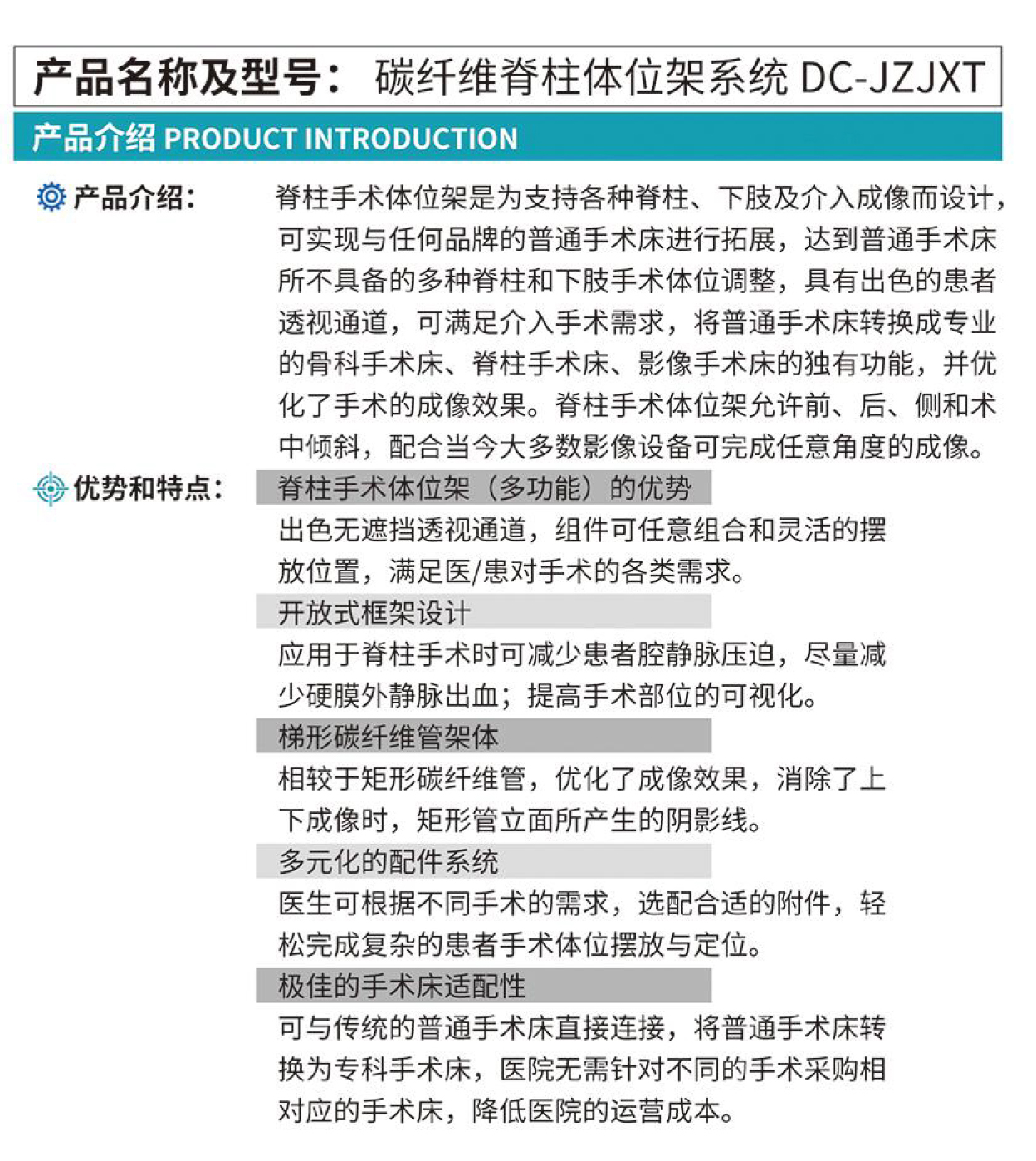 碳纖維脊柱體位架系統(tǒng)DC-JZJXT